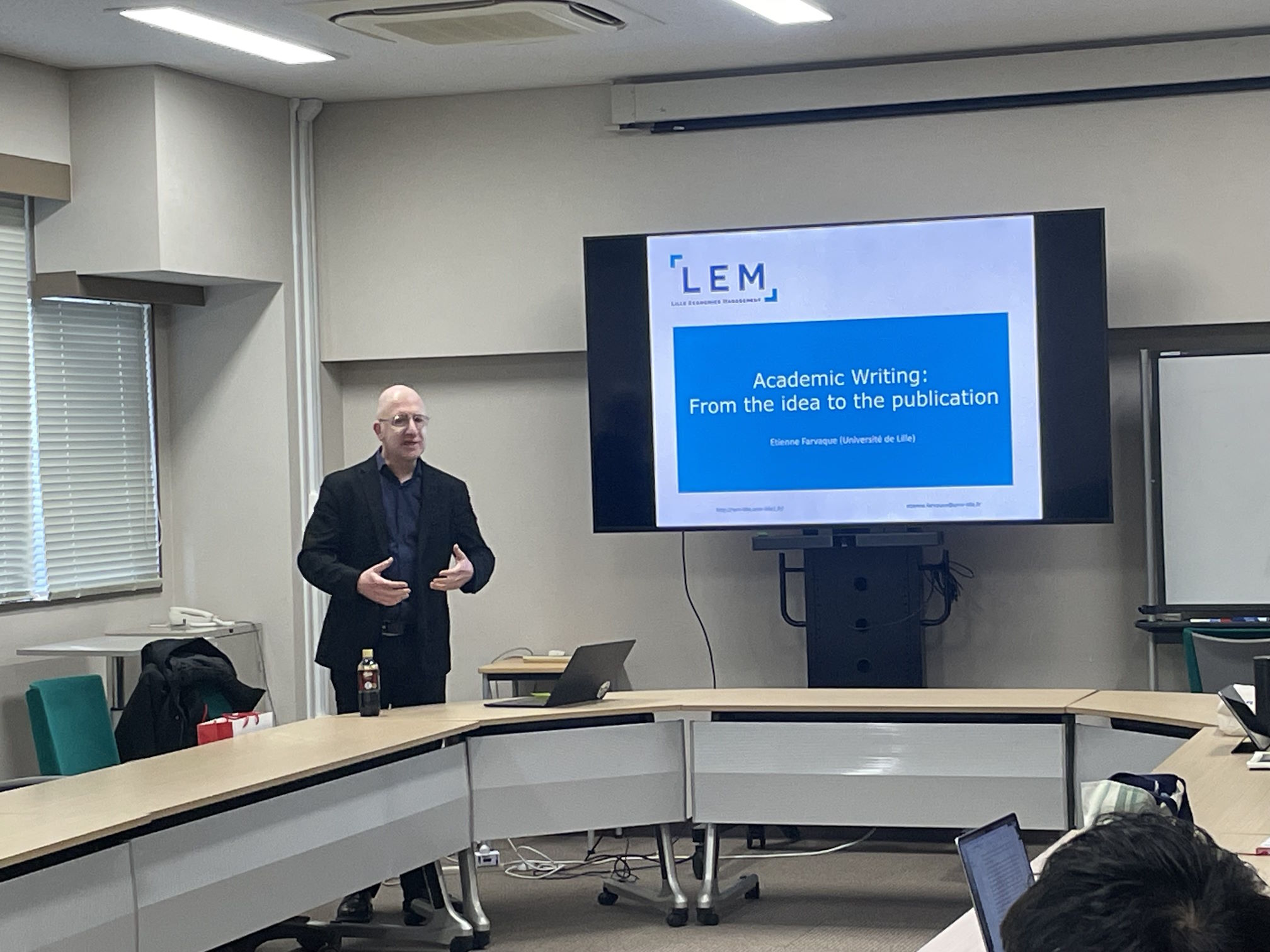 We invited Professor Etienne Farvaque to give a special lecture at Professor Miyazaki’s course during the fall semester of this academic year. Professor Farvaque is a professor at Lille University, France.